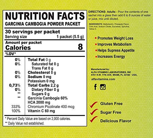 ALFA VITAMINS Best Garcinia Cambogia 2000mg per Serving – 60% HCA PLUS Chromium 400mcg – Powder Supplement – Premium…