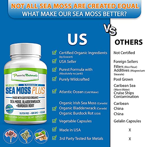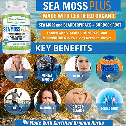 Power by Naturuals Certified Organic Sea Moss Plus Supplement (3 Bottles) 180 Capsules