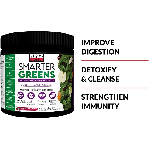 Force Factor Smarter Greens Superfoods + Digestion Powder, Greens Powder with 2 Billion Probiotics, Digestive Enzymes…