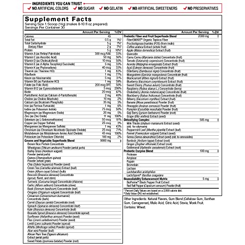 LOADED WITH VITAMINS & MINERALS: Nourish your health and wellness with essential vitamins, minerals, and fiber from more than 40 fruits, vegetables, and superfoods like kale, broccoli, ginger, cinnamon, milk thistle, exotic berries, turmeric, and more.