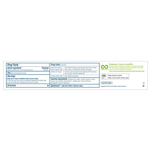 RECYCLABLE TUBE: Look for the blue recycling flag, squeeze out as much toothpaste as you can, replace the cap, and recycle